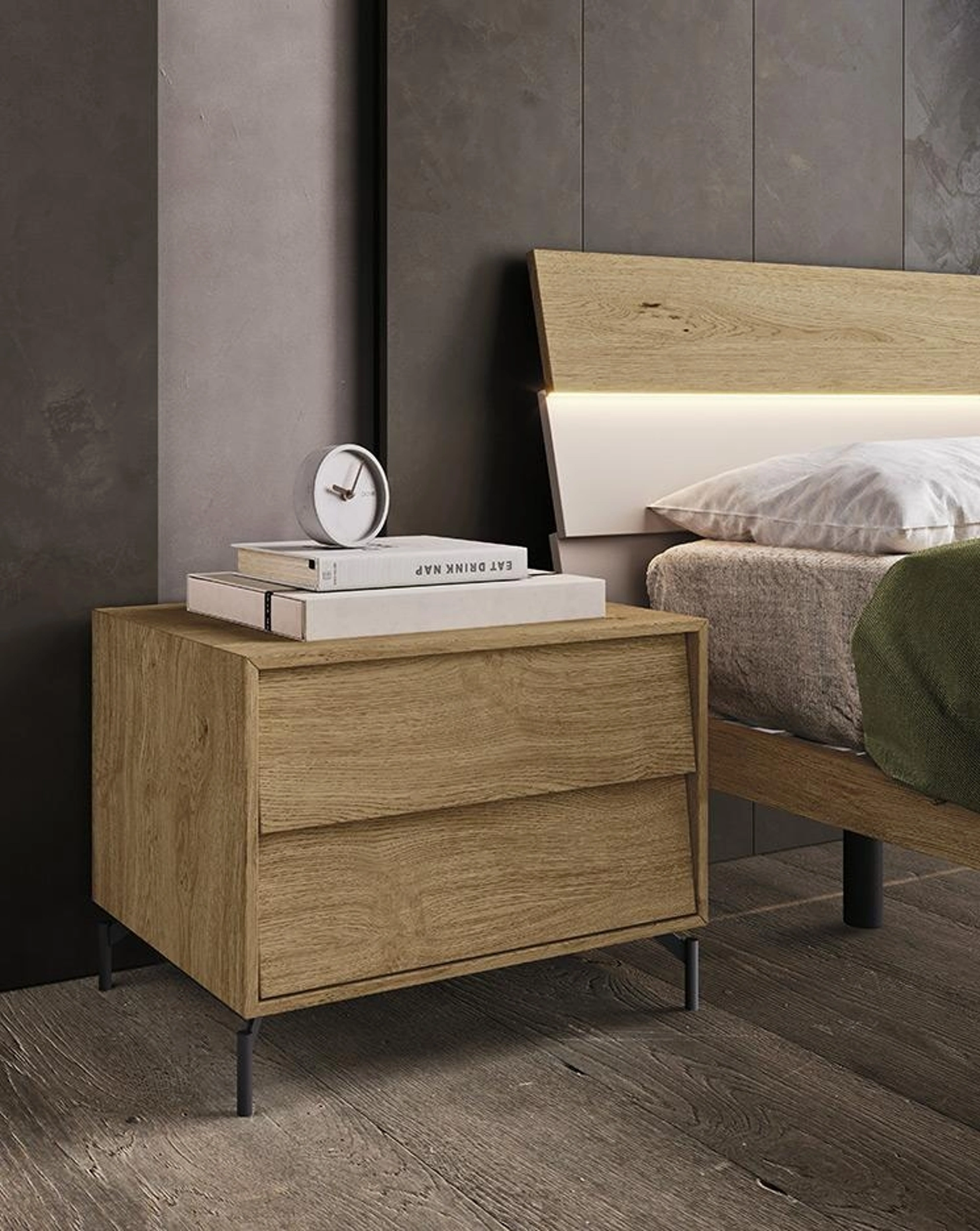 I Comodini sono mobili in grado di ultimare la zona notte assicurando una superficie di appoggio per certo utile e eclettico. Ti chiedi come abbinare letti, armadi e comodini? Con il modello di Mobilgam presente in foto avrai un arredo adatto a uno spazio dai richiami moderni.