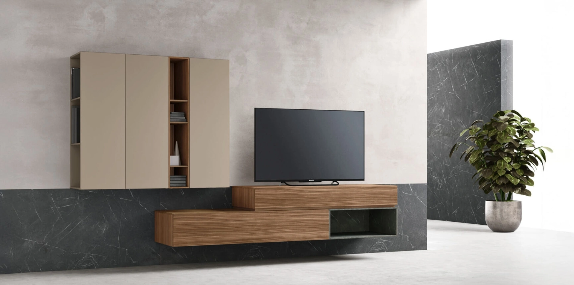 Se sceglierai di personalizzare la tua abitazione con questo Mobile Porta Tv sospeso sm2352 di Maronese, potrai sfruttare bene forma e dimensioni delle stanze arricchendone l'estetica. La zona giorno occorre che sia un luogo di charme, vivibile e ben arredato dunque la scelta di un buon modello di porta tv può fare una gran differenza. In una ricca serie di Mobili Porta Tv moderni a firma Maronese, prende una certa rilevanza il modello in melaminico presente in foto, mix di praticità e design. Per esporre la televisione e contenere oggettistica varia, un mobile porta tv in melaminico dai richiami moderni di Maronese come questo non ti deluderà.