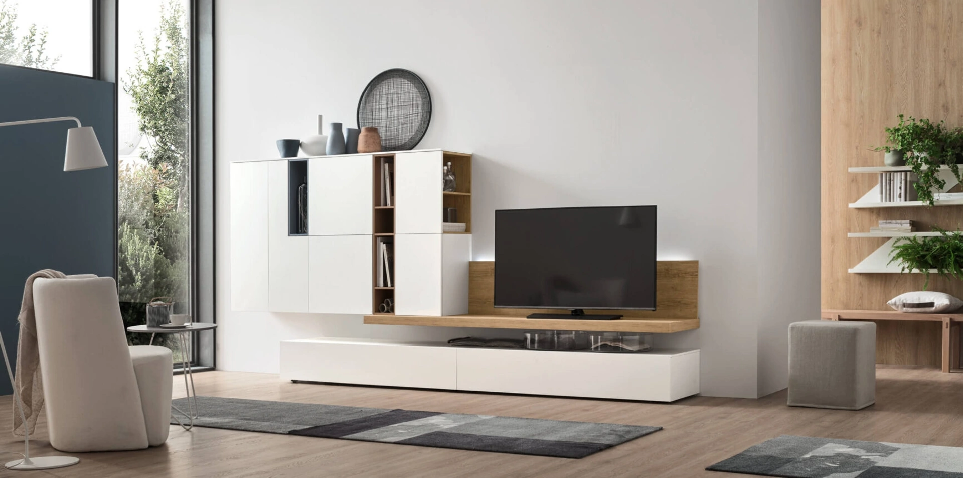 Attraverso un gioco dinamico di accostamenti fra accessori a giorno o vani chiusi, le Pareti Attrezzate moderne arredano il living usufruendo al meglio di ogni spazio. Questa parete attrezzata è una delle soluzioni della marca e ti consentirà di progettare la zona giorno secondo le più personali esigenze abitative. Le Pareti Attrezzate hanno assunto un posto fondamentale nella zona giorno delle nostre case: sono arredi multifunzionali e salvaspazio sempre realizzabili su misura.